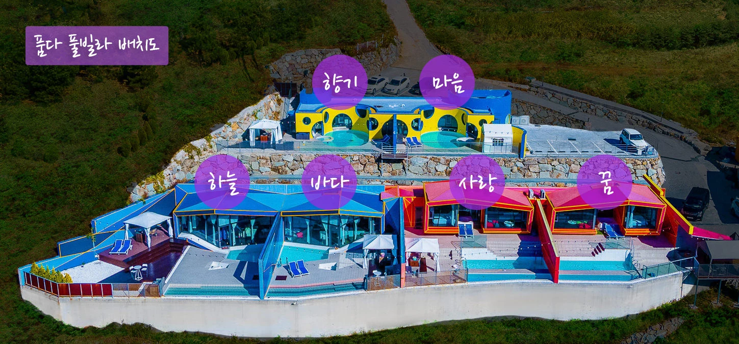 남해 품다 독채 스파 풀빌라 배치도 안내입니다.