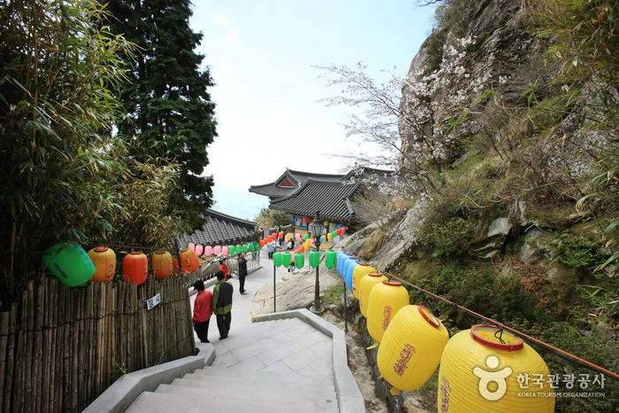 치마폭처럼 펼쳐진 앵강만 바다를 바라보는 남해읍 이동면의 호구산 (해발 560m) 기슭에 자리 잡은 고찰이다. 호구산은 북쪽과 남쪽에 각기 망운산과 금산을 마주 보는 산이다.사실 두 산의 유명세에 가려 잘 알려지진 않았지만, 호젓하고 빼어난 아름다움으로 인해 남해군에서 군립공원으로 지정한 산이다. 정상에 서면 북쪽으로 망운산을 넘어 하동 일대의 층첩한 산줄기와 광양 백운산, 그리고 멀리 지리산 줄기가 아스라이 보인다. 남으로는 그림같은 앵강만의 풍경이 눈에 들어오고, 그 앞에는 서포 김만중이 유배되어 사씨남정기를 집필하였던 노도가 보인다. (자료출처 : 대한민국 구석구석 - korean.visitkorea.or.kr)